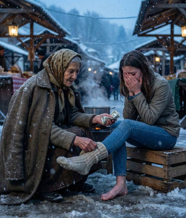 Jednog hladnog decembarskog jutra, dok je pripremala svoju tezgu, Ruža je čula tihe jecaje. Približavajući se izvoru zvuka, naišla je na mladu djevojku koja se smrzavala. Djevojka, stara oko dvadeset godina, postala je žrtva sitnog kriminala – ukraden joj je novčanik s novcem koji je trebala za povratak u studentski dom. Njena tanka jakna i mokre patike jasno su pokazivali koliko joj je teško. U tom trenutku, kada su svi ostali bili zaokupljeni svojim brigama, Baka Ruža nije oklijevala. Prišla joj je i s empatijom je upitala šta se desilo.