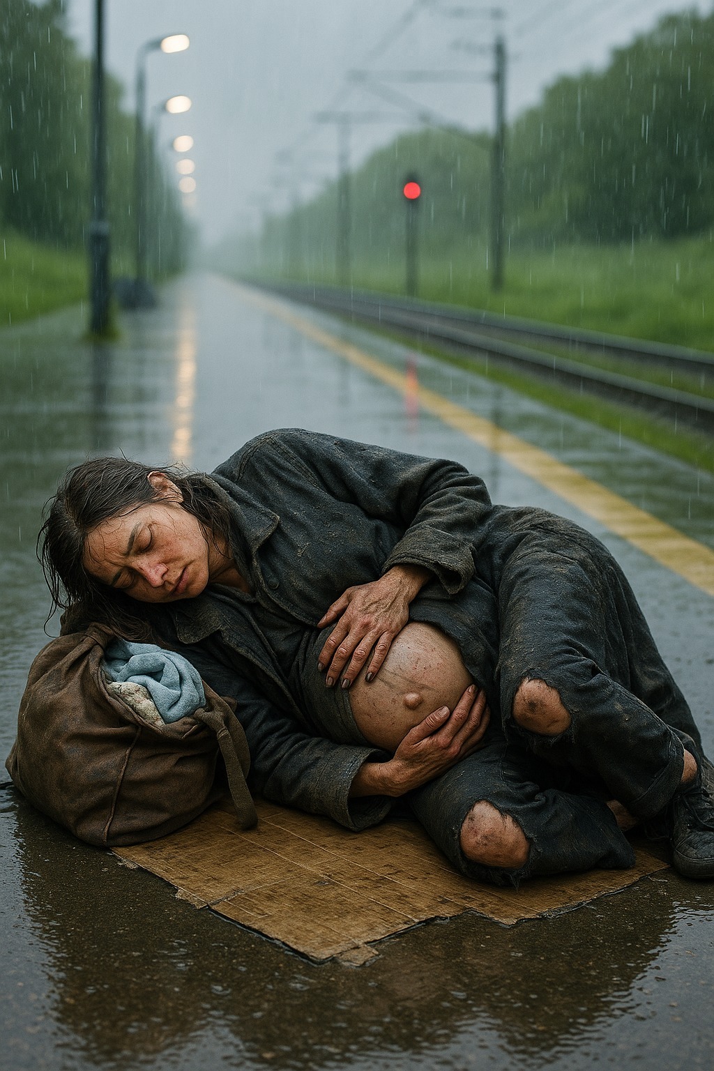 Bila je hladna, kišna noć. Železnička stanica, obično prepuna žurbe i buke, tog dana bila je mesto na kojem su se sudarali svetovi. Trudna žena bez krova nad glavom ležala je pored koloseka, pokrivena samo mokrim kaputom koji nije mogao da je zaštiti od kiše.
