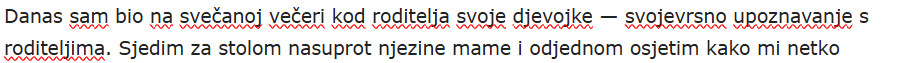 Dok smo uživali u ukusnim jelima koja je pripremila njena mama, razgovor je tekao bez problema. Razmjenjivali smo priče o svakodnevnim životima, hobijima i planovima za budućnost. Međutim, kada sam se našao nasuprot njene mame, iznenada sam osjetio neobičan dodir. Netko mi je milovao nogu, što me potpuno zbunilo. U tom trenutku, moj um je bio preplavljen pitanjima. Tko bi to mogao biti? Da li se neko igra sa mnom? Umjesto da ostanem smiren, urlao sam: „Koji vrag?” Ovaj trenutak, koji je trebao ostati u okvirovima uljudnosti, pretvorio se u nešto sasvim drugačije. Tokom te večere, bili smo svi zajedno, povezani kroz smijeh i iznenađenje.