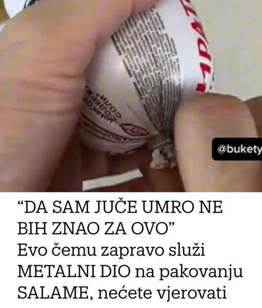 U posljednjem periodu, metalni dio na pakiranju salame izazvao je pravu buru na društvenim mrežama, gdje su korisnici otvoreno raspravljali o njegovoj funkciji. Mnogi su se pitali zašto bi nešto tako malo i naizgled beznačajno imalo svoju ulogu u pakiranju hrane. Pojedini su čak snimili video zapise u kojima se pokazuje kako taj metalni detalj može olakšati vađenje salame iz ambalaže, što je dovelo do različitih mišljenja o njegovoj praktičnosti. Ova situacija otvara važno pitanje: koliko često prolazimo pored sitnica koje mogu imati značajnu funkciju?