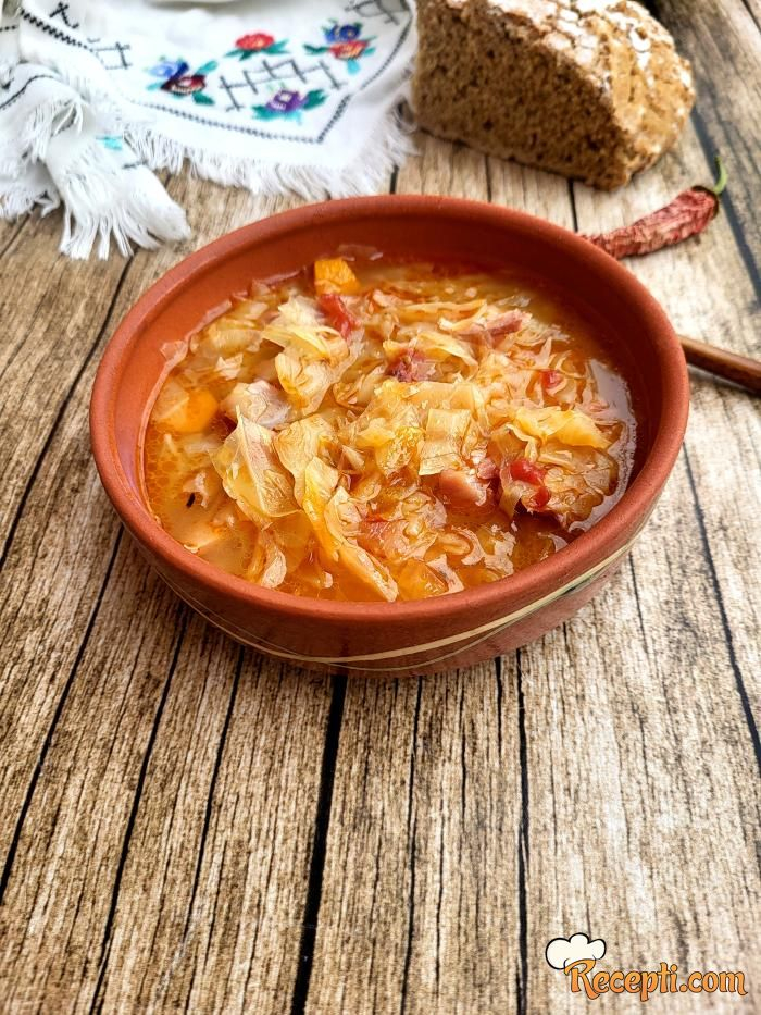 Zaprška: U tiganju zagrijte malo ulja, dodajte pola kašice brašna i kratko propržite. Dodajte mljevenu i tucanu papriku. Zapršku odmah dodajte u kupus i lagano promiješajte. Ovo je trenutak kada se svi sastojci spajaju u jedan harmoničan spoj.