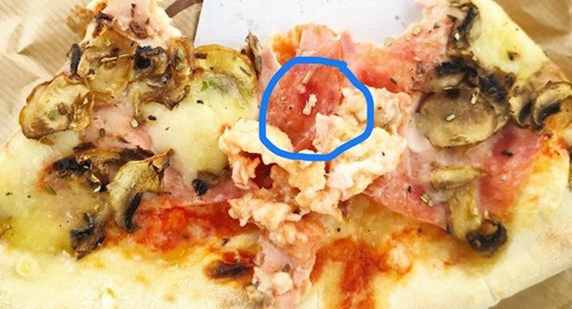 • Neobični sastojci ili strani elementi na pizzi mogu ukazivati na lapsus u procesu pripreme ili grešku zaposlenih.