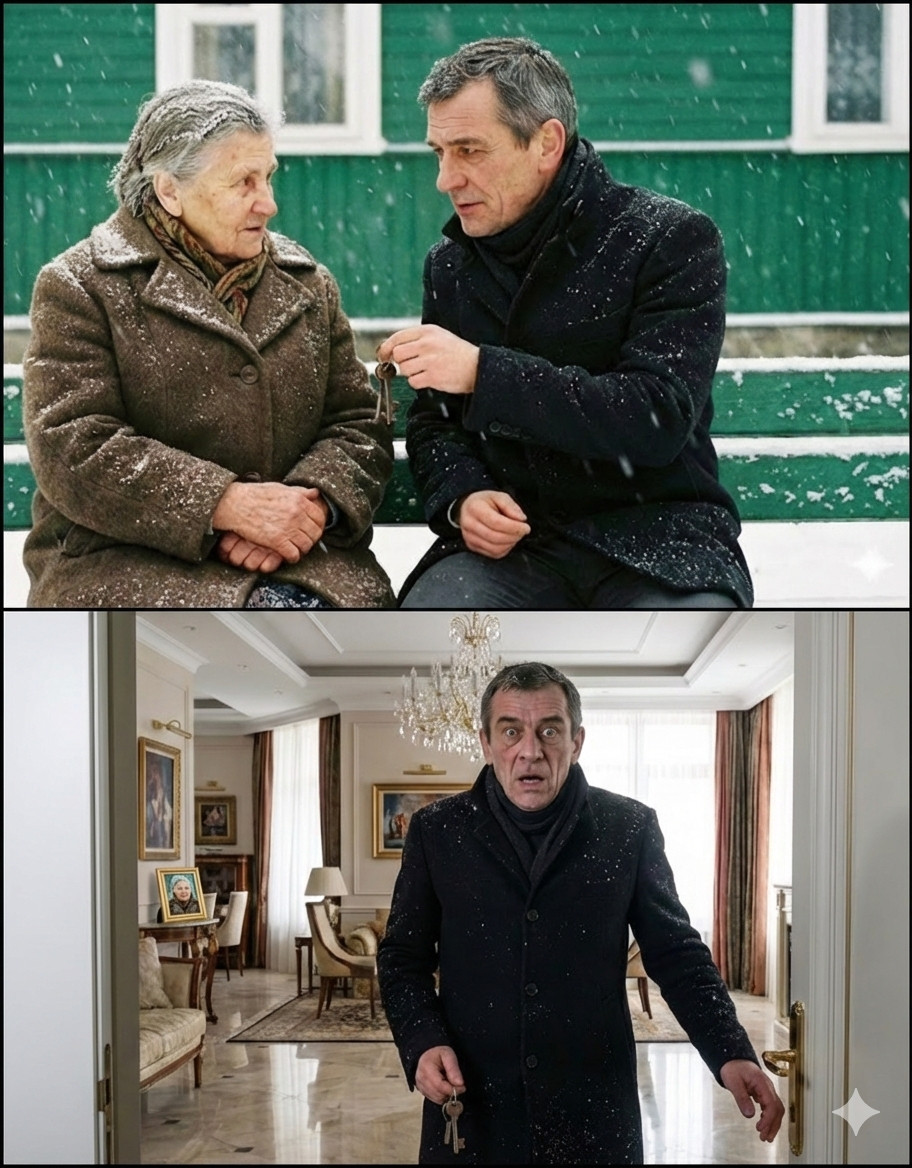 Jedne zime, dok je vozio svoj luksuzni automobil, Viktor je naišao na staricu na autobuskoj stanici. Izgledala je iscrpljeno, zaboravljeno i prepušteno hladnoći. U početku se nije želeo zaustaviti, misleći da će to samo odložiti njegov put do posla. Međutim, nešto unutar njega se pomerilo. Skrenuo je, zaustavio auto i odlučio da joj pomogne. Njegova prva reakcija bila je da joj ponudi ključeve svog praznog stana i malo novca kako bi preživela noć, misleći da je to dovoljna pomoć.