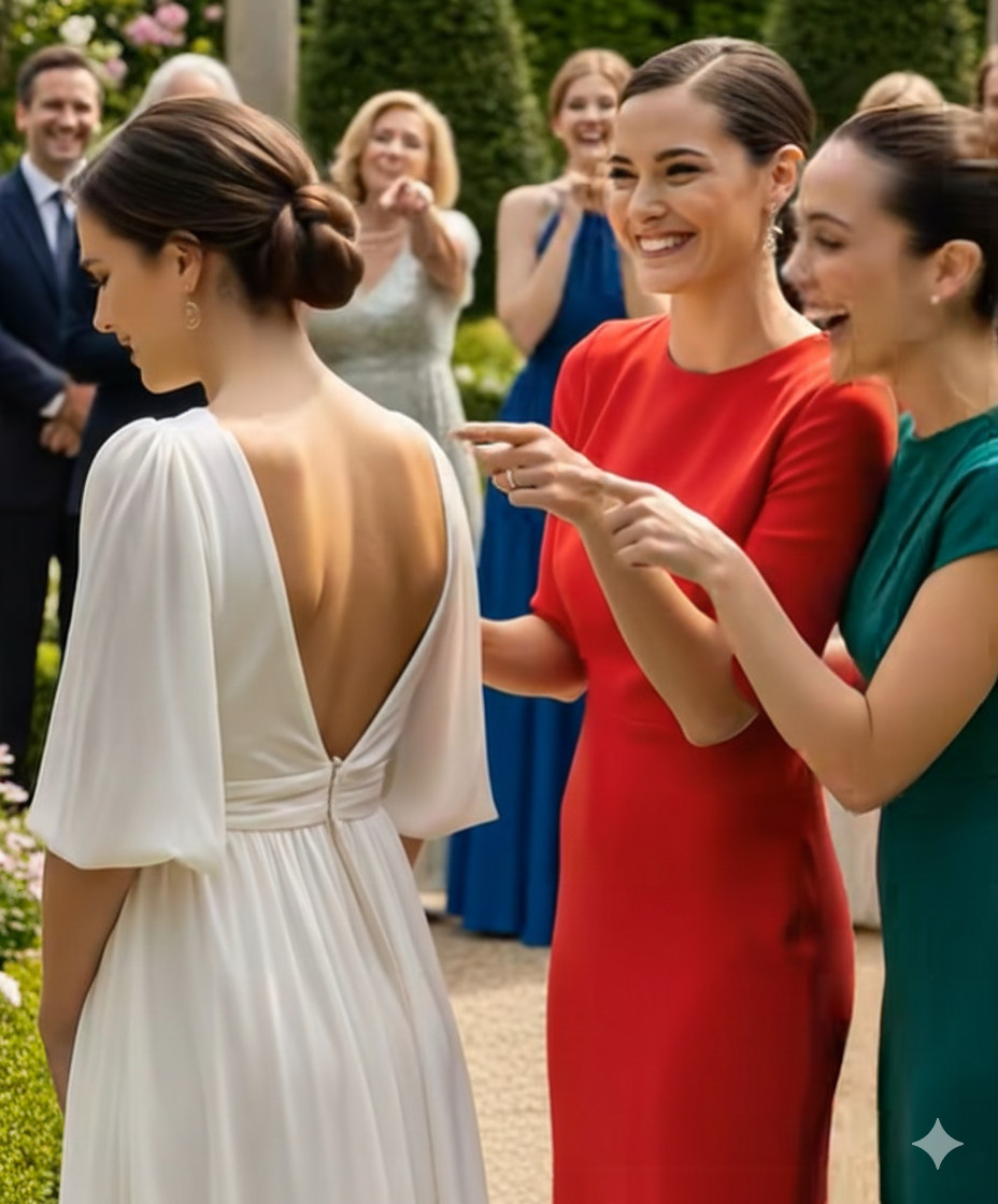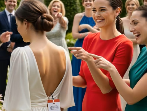 Oblačeći elegantnu haljinu i donoseći pažljivo odabran poklon za domaćicu, junakinja je pokušavala da se osjeća samouvjereno. Međutim, osjećaj nelagode nije se mogao izbeći. Kada su se gosti počeli okupljati, Isabelle je primijetila sitnu grešku: na haljini naše junakinje ostala je etiketa. U tom trenutku, osjetila je priliku da se istakne i počela je ismijavati glavnu junakinju pred svima, uvjerena da će ovim potezom potvrditi svoju dominaciju i superiornost. Ovaj trenutak osvetio je duboko ukorijenjene društvene dinamike koje često vode do neugodnosti i nesigurnosti.