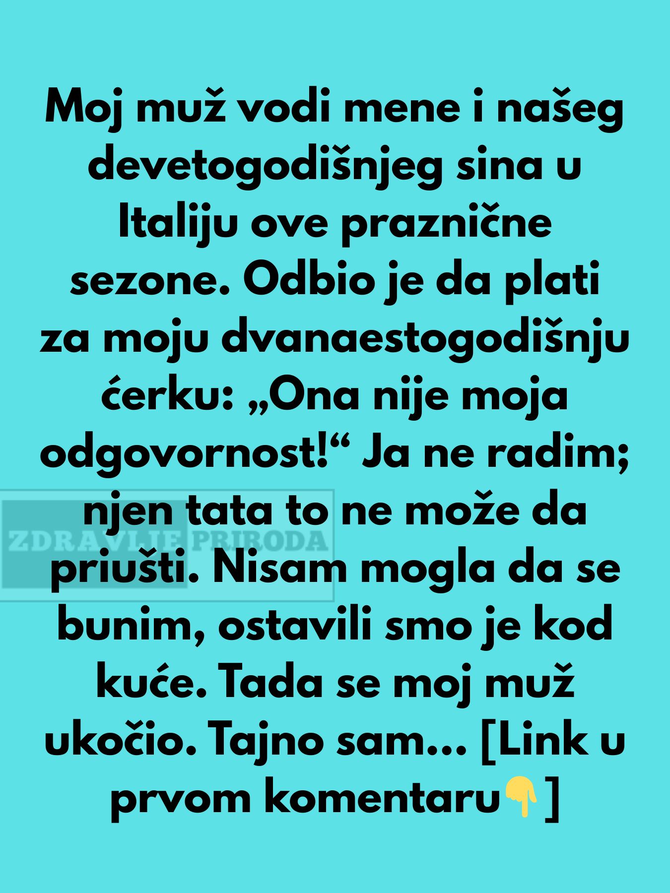 Na kraju, ova priča nije samo o porodici koja putuje ili praznicima, već o složenosti porodičnih odnosa, emocionalnom zdravlju i izazovima s kojima se roditelji suočavaju. U svakom braku i porodici postoje nevidljivi emocionalni tereti koje svi nose. Ključ za prevazilaženje ovih problema leži u empatiji, razumevanju i spremnosti da se svi članovi porodice zajednički suoče s izazovima koji dolaze. U ovom slučaju, iako je putovanje bilo ispunjeno napetostima i tugom, pružilo je priliku za lični rast i jačanje porodičnih veza. U konačnici, svaka teška situacija može postati prilika za jačanje međusobnog povjerenja i ljubavi, ukoliko su svi spremni raditi na svojim emocijama i komunikaciji.