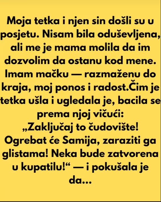 Na trenutak, osjećala sam se kao da sam između dvije vatre — moje srce je bilo na strani mačke, dok je tetka jasno izražavala svoje strahove i nelagodu.
