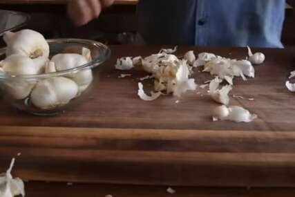 Prvi korak: Očistite bijeli luk i odvojite sve čehne. Sitno nasjeckajte ili usitnite kako bi se sastojci što bolje proželi.