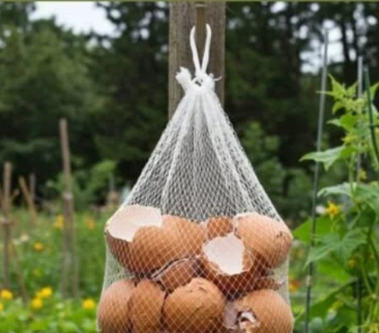 Biljke poput paradajza, paprike i tikvica pate od nedostatka kalcijuma, što izaziva tzv. trulež ploda. Okačene ljuske, postepeno se ispiru kišom, i na taj način obogaćuju tlo kalcijumom, baš tamo gde je potrebno. -