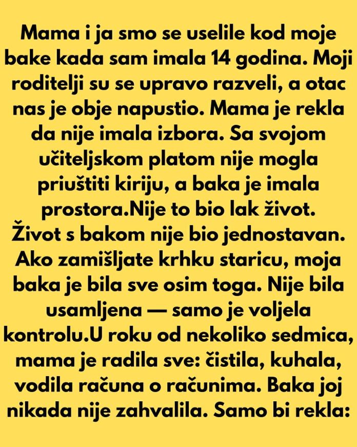U trenutku kada je imala samo četrnaest godina, život mlade žene u potpunosti se promijenio. Nakon razvoda svojih roditelja, ona i njena majka morale su se preseliti kod bake, što je predstavljalo značajan preokret u njihovim životima. Naizgled bezazlene situacije, poput preseljenja, često donose ne samo fizičke promjene već i emocionalni teret, a u ovom slučaju, to je bio teret koji je bio daleko od lakog. Baka, koja je umjesto ljubavi nudila kontrolu, postavila je temelje za složene odnose koji će se razvijati u godinama koje su dolazile. Ovaj novi životni aranžman stvorio je osjećaj nesigurnosti i straha kod mlade žene, koja je počela sumnjati u vlastitu vrijednost.
