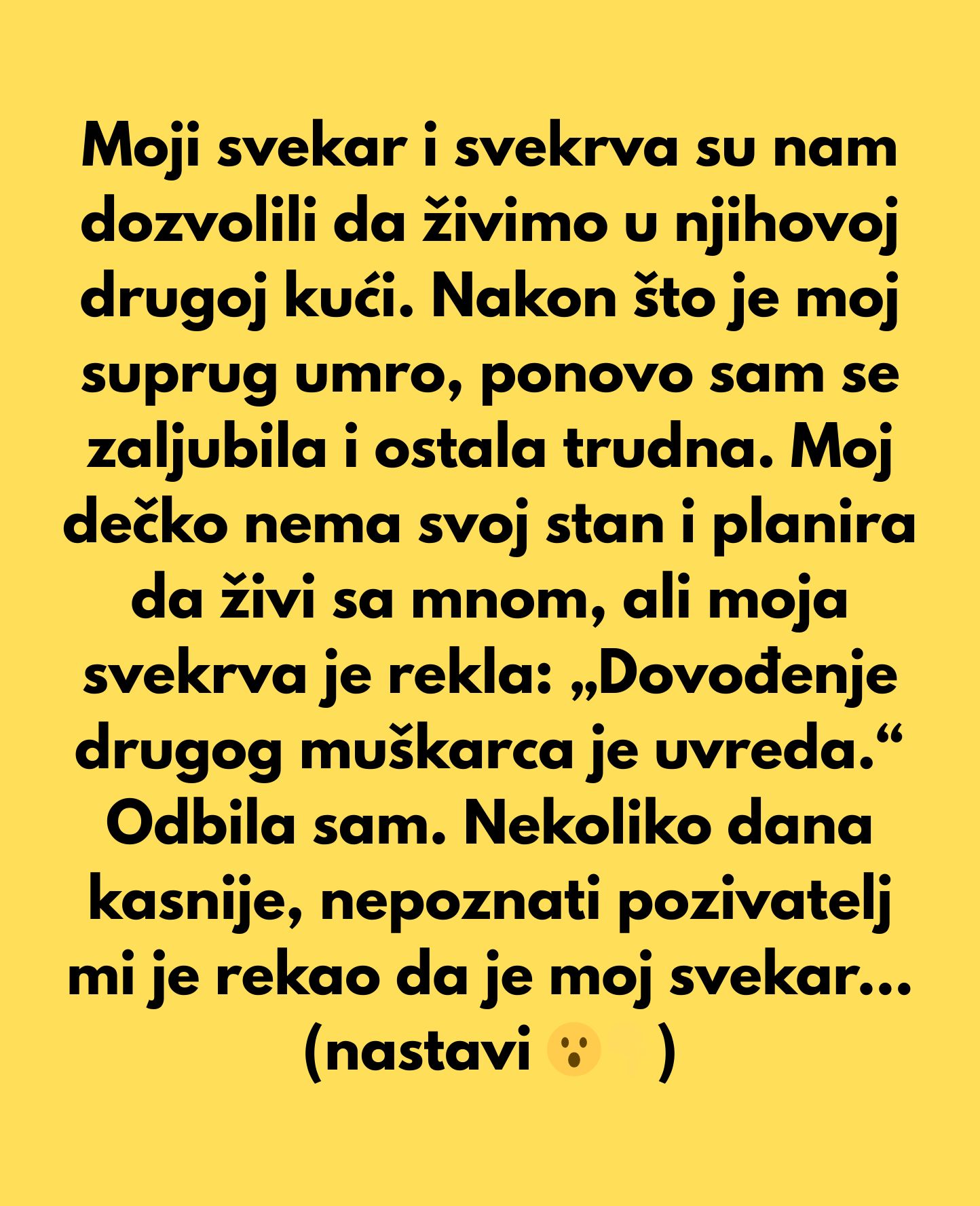 Nakon četiri godine tugovanja, mlada žena je pronašla novu ljubav i saznala da je trudna. Ova vijest, koja bi za mnoge bila izvor radosti, u njenom slučaju je postala izvor sukoba unutar porodice. Njen dečko nije imao svoj stan i odlučio je da se preseli kod nje, što je izazvalo bijes njene svekrve. Komentar njene svekrve, da je dovođenje drugog muškarca uvreda za njenog sina, ukazuje na duboko ukorijenjene predrasude i tradicionalne stavove koji često ne prepoznaju složenost modernih veza. Ovaj konflikt je odraz ne samo ličnih emocija, već i šire društvene dinamike koja se bori s promjenom u percepciji ljubavi, gubitka i obitelji.U situacijama poput ove, često se postavlja pitanje prava i obaveza unutar porodice. Da li bi mlada žena trebala žrtvovati svoju sreću i budućnost zbog sjećanja na svog preminulog supruga? Njena odluka da odbije napustiti kuću, uprkos pritiscima, odražava njen unutarnji borbeni duh i želju za samostalnošću. Dok su neki članovi porodice možda smatrali da je ona u obavezi da ostane uz sjećanje na svog muža, njen život i emocije nisu manje važni. Ova dilema nas podsjeća na to koliko su individualni identiteti važni unutar porodica koje se suočavaju s gubicima.