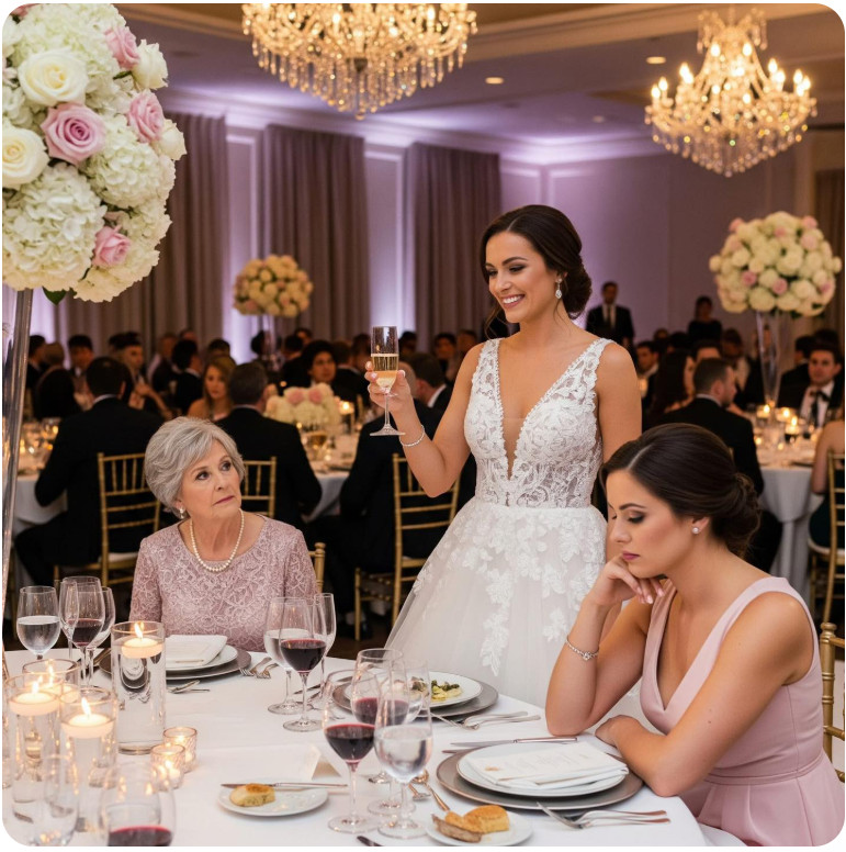 Kada je Ana, vlasnica prestižne agencije za organizaciju događanja, stigla na svadbu svoje nećake, njen cilj je bio jasan – učiniti da svi prisutni uživaju u večeri. Iako je nosila u sebi određene nesigurnosti, željela je da taj dan bude savršen. Međutim, dolazak na svadbeno slavlje nije prošao onako kako je ona to očekivala. Već pri ulasku, shvatila je da nije dobrodošla, jer je njena rođaka Margaret odlučila da je smjesti za stol koji se nalazio blizu kuhinjskih vrata, daleko od svih ostalih gostiju. Ova situacija je Anu duboko pogodila, jer je znala koliko se trudila da izgradi svoj ugled, ali je ipak ostala posvećena tome da uživa u večeri i proslavi.