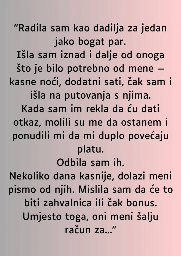 Kuća u kojoj sam živela nije bila samo mesto za život; to su bile godine uspomena, smeha i suza. Sada se suočavam s izborom koji je težak: da napustim svoj dom, mesto koje volim, ili da se borim za svoj prostor. Moj instinkt me zove da ostanem, da se borim za svoju porodicu i za svoje mesto u njoj. Ne želim biti viđena kao prepreka, već kao osoba koja zaslužuje poštovanje i ljubav. Stariji ljudi zaslužuju da budu voljeni i poštovani, baš kao i svaki drugi član porodice. Razumem da su promene neizbežne, ali one ne bi trebale da značе da se zanemaruju osećanja i prava starijih članova porodice.