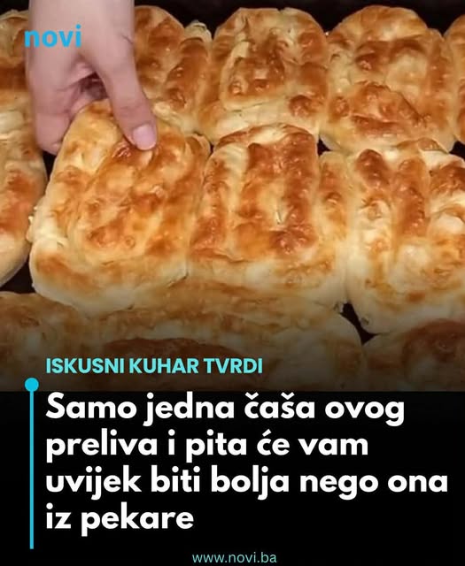 Ovaj preliv je posebno popularan među onim domaćicama koje žele da impresioniraju svoje goste, ali i porodicu. Kada se preliv nanese na pitu neposredno prije pečenja, dolazi do stvaranja mjehurića ugljen-dioksida iz mineralne vode, što doprinosi savršenom pečenju. Ovi mjehurići se tokom pečenja pretvaraju u paru, koja širi slojeve tijesta, čineći ga laganim i prozračnim. Na taj način, svaka pita dobija onu savršenu hrskavost koja se može usporediti samo s najboljim pekarama.