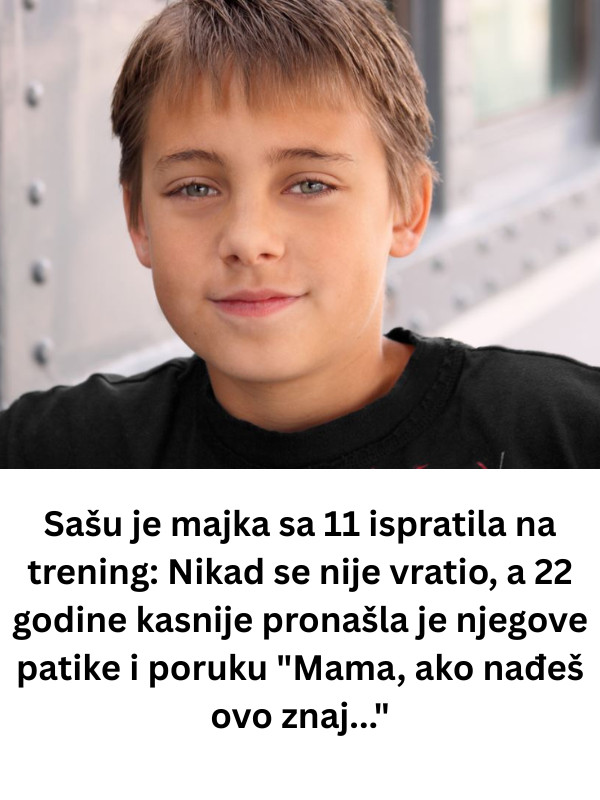 Saša je bio dečak od jedanaest godina, pun snova i ambicija. Njegovo omiljeno vreme bilo je ono provedeno na fudbalskom terenu, gde je maštao o svojoj karijeri fudbalera. Inspiraciju je crpio iz svojih fudbalskih junaka kao što su Lionel Messi i Cristiano Ronaldo, a redovno je pratio sve fudbalske mečeve na televiziji. Tog kasnog popodneva, dok je vezivao pertle na svojim patikama, iz kuhinje se čuo glas njegove majke koja ga je pozivala. „Samo nemoj da trčiš preko ulice“, rekla je, ne znajući da će to biti poslednje reči koje će mu ikada izgovoriti. Kroz prizmu tih reči, možemo videti koliko je ljubav i briga roditelja snažna i kako često zaboravljamo koliko je svaki trenutak dragocen. Kada se Saša nije vratio sa treninga, majka je prva pomislila da se možda malo zadržao kod prijatelja, ali kako su sati prolazili, njen strah je postajao sve veći. Ova situacija, koja se naizgled činila kao obična svakodnevica, ubrzo će se pretvoriti u noćnu moru.