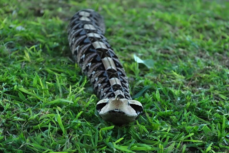 Kada se približila, “igračka” je iznenada oživjela. Njeno srce je zakucalo, a adrenalin je preplavio tijelo kada je shvatila da se suočava sa Gabonskom zmijom. Ova zmija, poznata po svojoj izvanrednoj kamuflaži, može se gotovo neprimjetno stopiti s okolinom, što ju čini izuzetno opasnom. Žena je, na sreću, zadržala prisebnost i uspjela snimiti kratak video, pre nego što se povukla unazad u sigurnost svog doma. Ovaj video, koji je ubrzo postao viralan, izazvao je različite reakcije — od straha do divljenja prema njenoj hrabrosti.