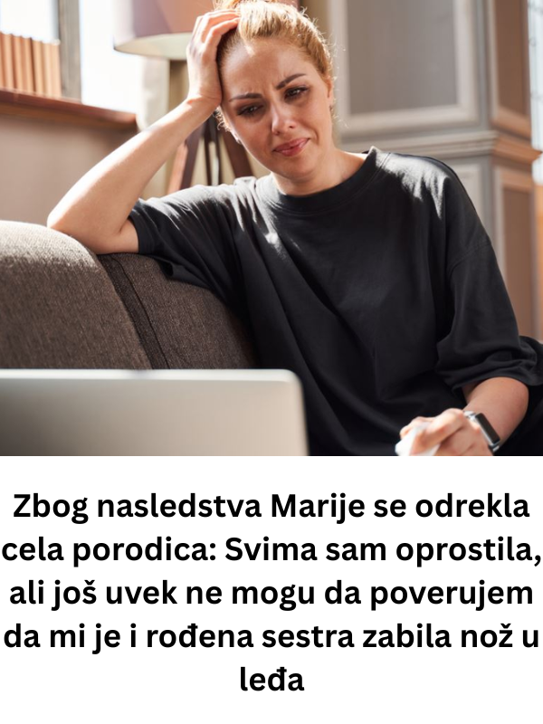 Marija danas govori smireno, gotovo tiho, ali svaka njena rečenica nosi težinu godina ćutanja. Zbog jedne odluke, jednog papira i niza razgovora iza zatvorenih vrata, cela porodica joj je okrenula leđa. Ipak, ono što je najviše boli nije gubitak nasledstva, već činjenica da je u svemu tome učestvovala i njena rođena sestra.